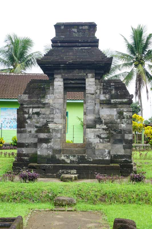 Wujud kontruksi candi ini berupa pintu gerbang paduraksa dengan puncak mempunyai bentuk kubus. Pintu gerbang ini terbuat dari batu andesit, dengan ukuran panjang 4,09 m, luas 2,27 m dan tingginya 5,6 m. Pintu gerbang mempunyai sayap pada kanan kirinya dan tidak mempunyai relief, namun hanya mempunyai pelipit garis saja. Pada ronde atas ambang pintu terdapat pahatan angka tahun 1312 Saka (1390 M).